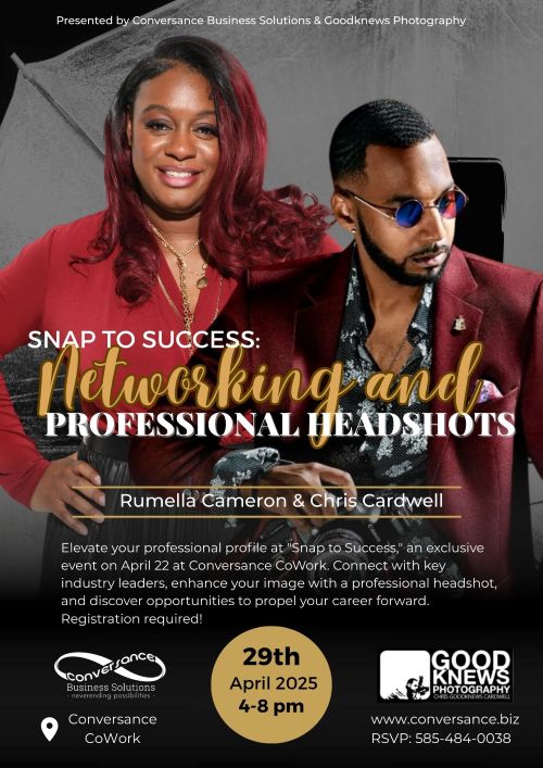 Join us at Conversance CoWork on April 29th for a one-of-a-kind networking opportunity that promises not just connections but also a chance to enhance your professional portfolio. In collaboration with Goodknews Photography, we’re offering an event where you can get high-quality professional headshots while mingling with fellow business leaders and entrepreneurs.